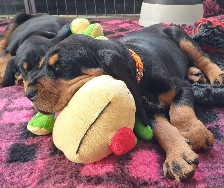 This litter has been waited for with much excitement. Father is an Irish Show Champion who has also been campaigned in Europe and had the honour of being the very first Black and Tan Coonhound to grace the Hound Group ring at Crufts. Sherlock is a fabulous character , intelligent and willing, an absolutely great ambassador for the breed. Mother is quite beautiful in body and soul, shown very successfully as a youngster she has matured into a charming lady with a terrific temperament.The puppies have been raised on the very best for this slow growing magnificent breed. Any questions are most welcome , we want these babies to go to owners who understand just what makes a Coonhound tick.